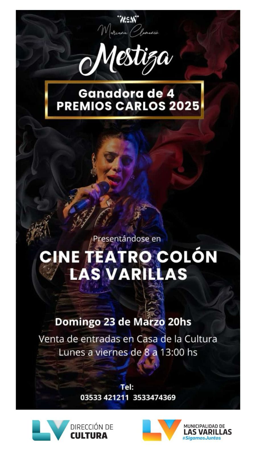 El domingo 23 de marzo, en el Cine Teatro Colón se estará presentando «Mestiza» un espectáculo que ganó cuatro premios Carlos 2025.